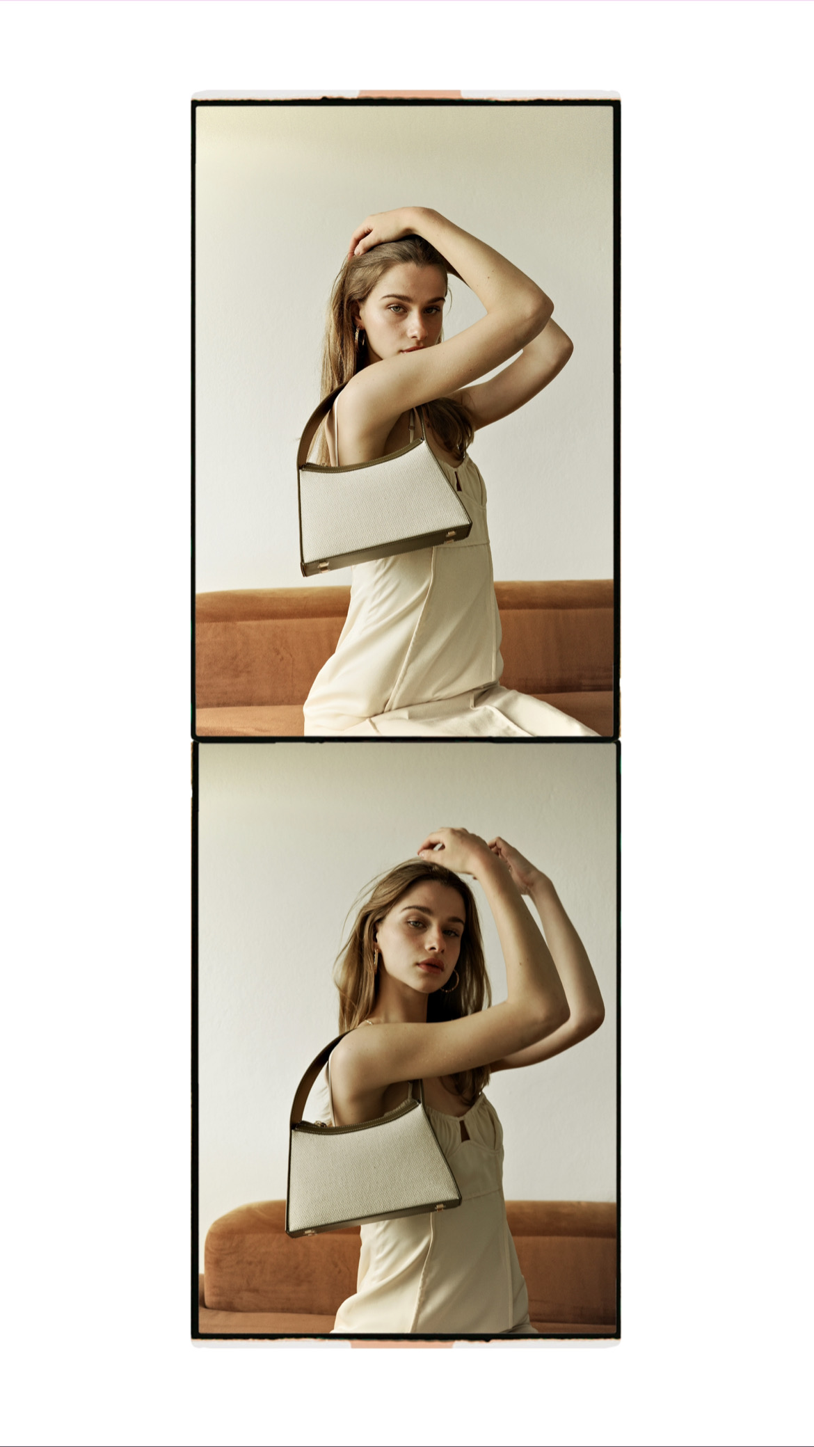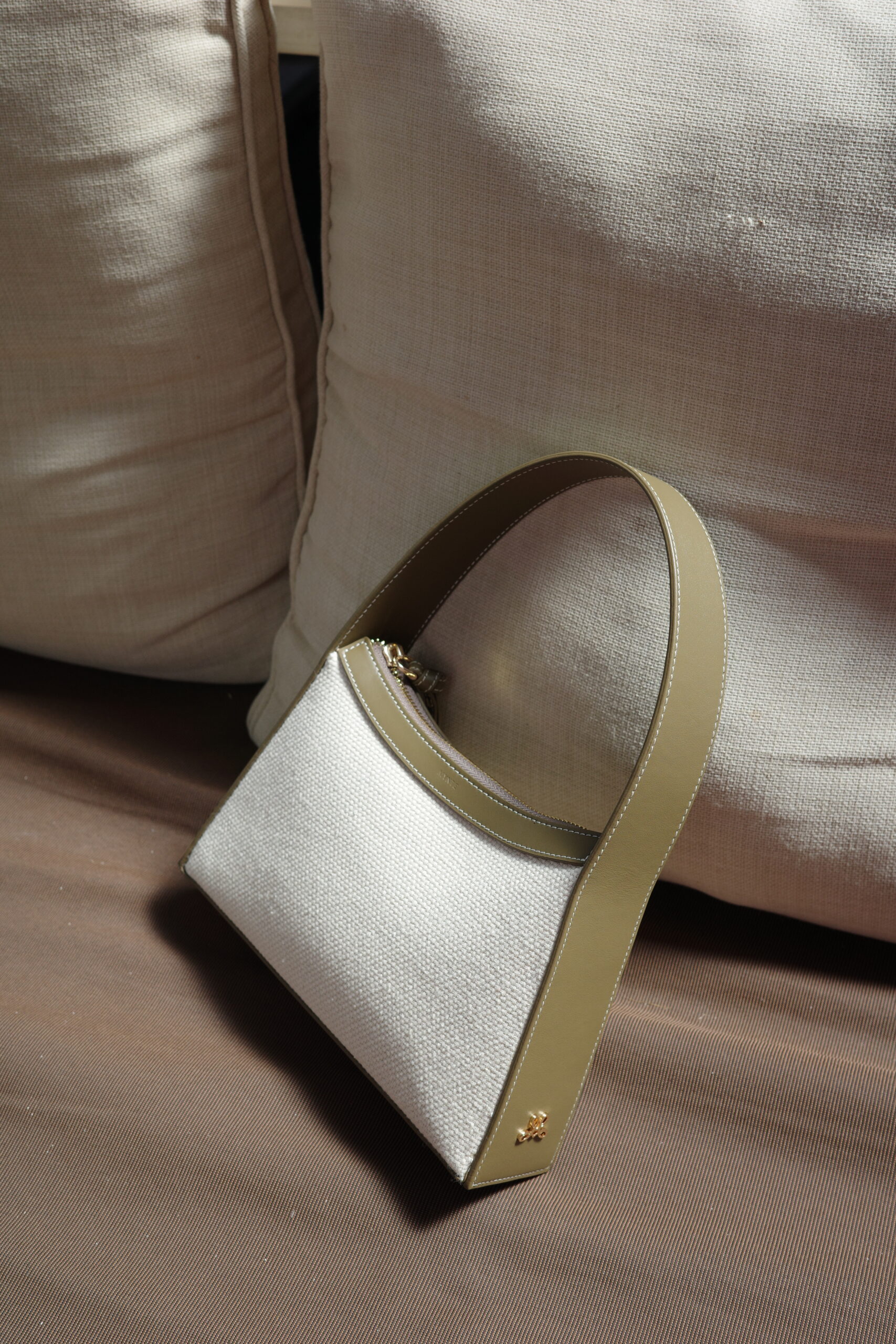 A handcrafted bag in hobo style made of genuine leather and a blend of duck canvas fabric giving you a sense of vacation vibes. Our signature Hythe is here to carry all your essentials while making sure you look your best. This hobo bag has been detailed with logo plaque on the side and finished with gold-tone hardware. Featuring a curved leather strap with 35 cm length.